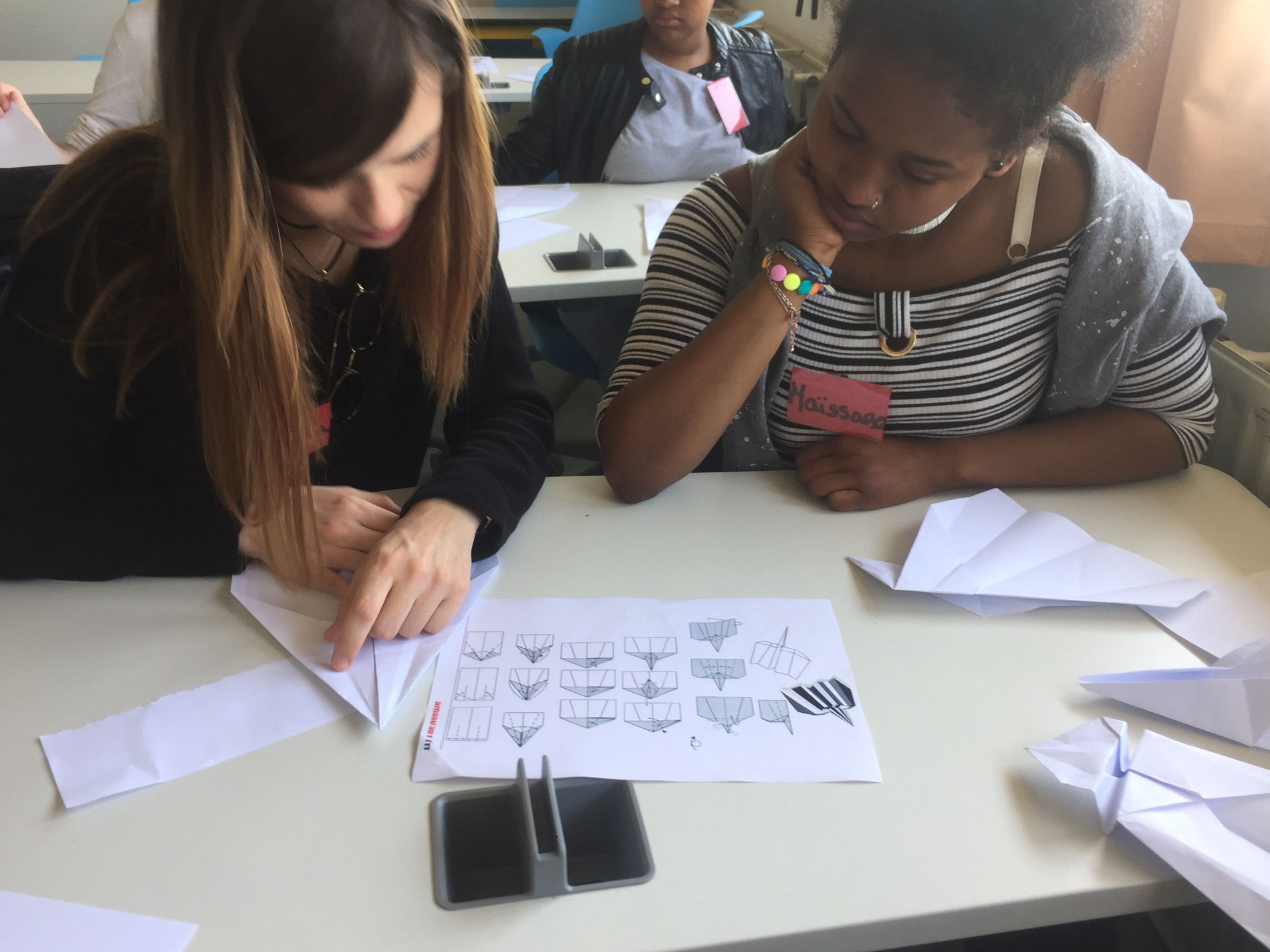 Munis de plans de constructions d'avions en papier, nous avons essayé de fabriquer plusieurs modèles.